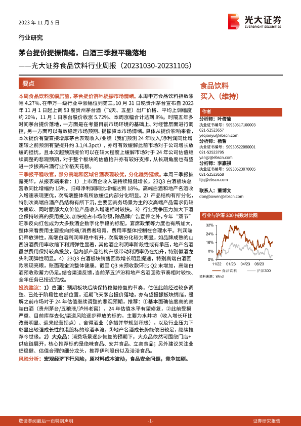 【光大证券】【20231105】20231105-光大证券-食品饮料行业周报:茅台提价提振情绪,白酒三季报平稳落地-10页
