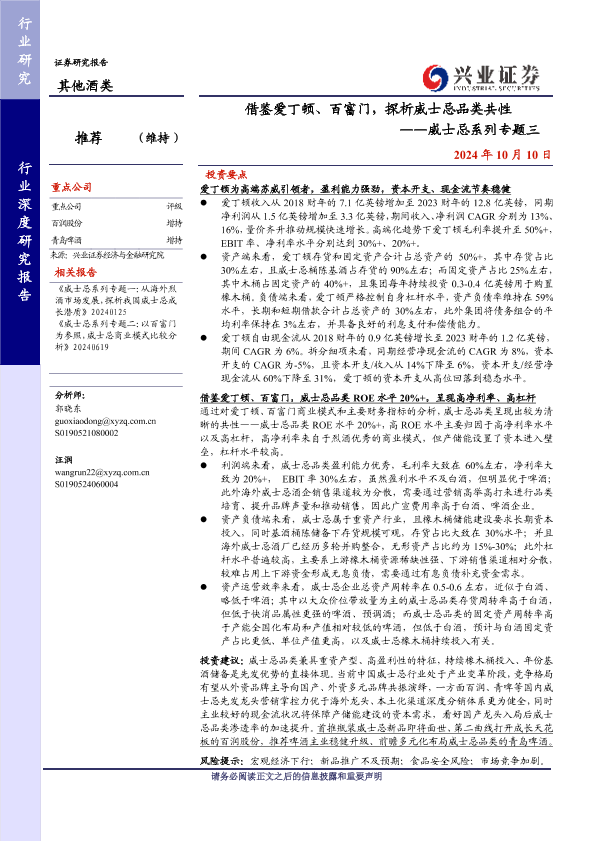 【兴业证券】【20241010】借鉴爱丁顿、百富门,探析威士忌品类共性 ——威士忌系列专题三-22页