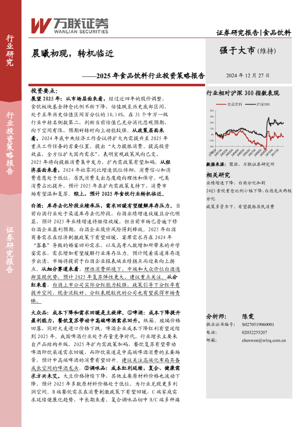 【万联证券】【20241227】2025年食品饮料行业投资策略报告:晨曦初现,转机临近-38页