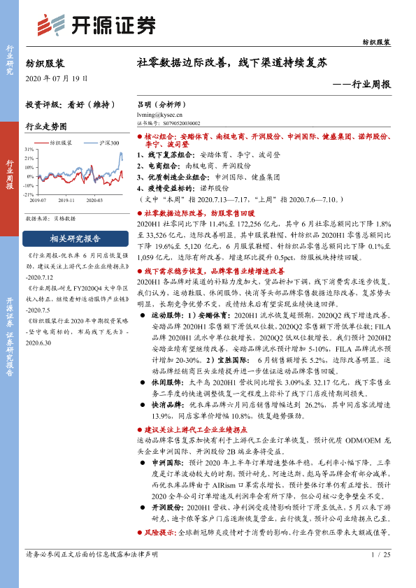 【开源证券】【20200719】20200719-开源证券-纺织服装行业周报:社零数据边际改善,线下渠道持续复苏-25页