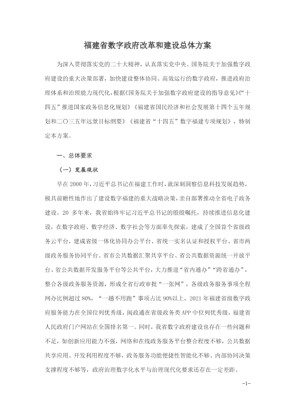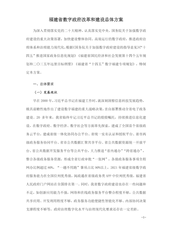 【福建省人民政府】【20220101】福建省数字政府改革和建设总体方案(2022年)-31页