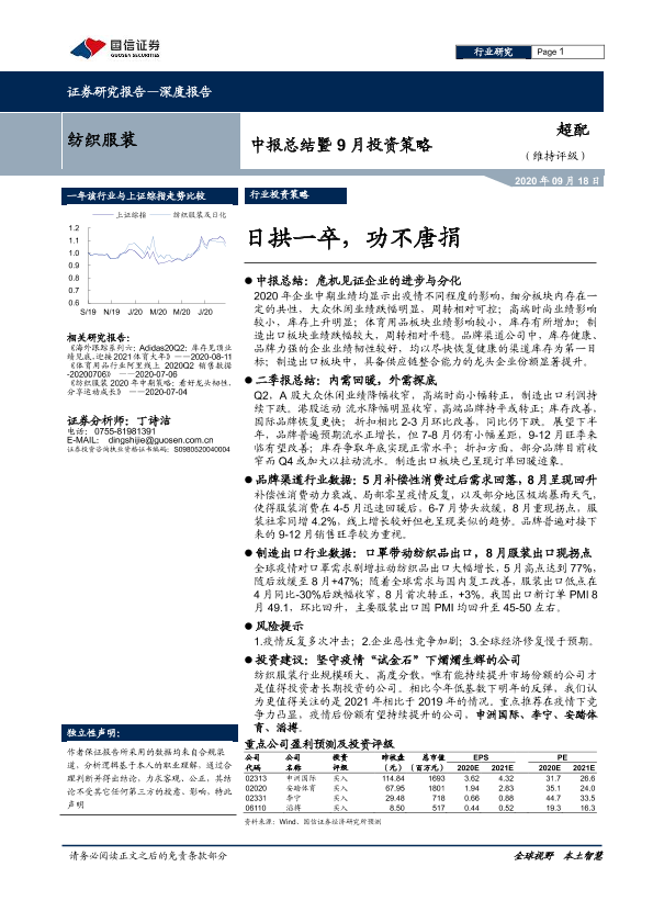 【国信证券】【20200918】20200918-国信证券-纺织服装中报总结暨9月投资策略:日拱一卒,功不唐捐-24页