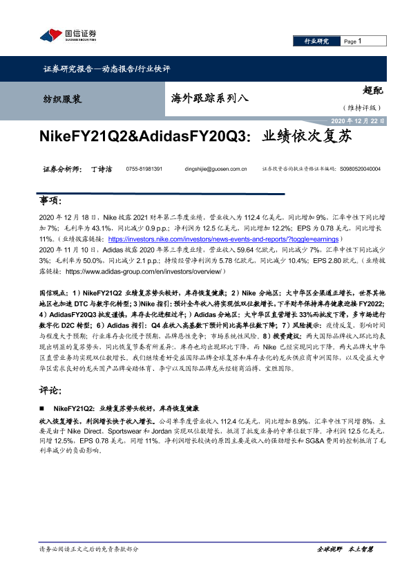【国信证券】【20201222】纺织服装海外跟踪系列八:NikeFY21Q2&AdidasFY20Q3:业绩依次复苏-11页
