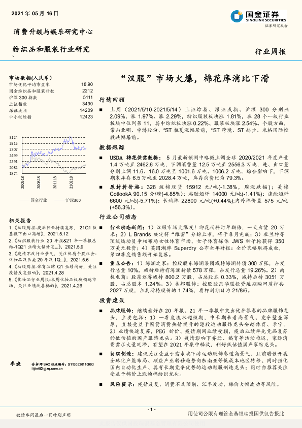 【国金证券】【20210516】20210516-国金证券-纺织品和服装行业研究:“汉服”市场火爆,棉花库消比下滑-16页