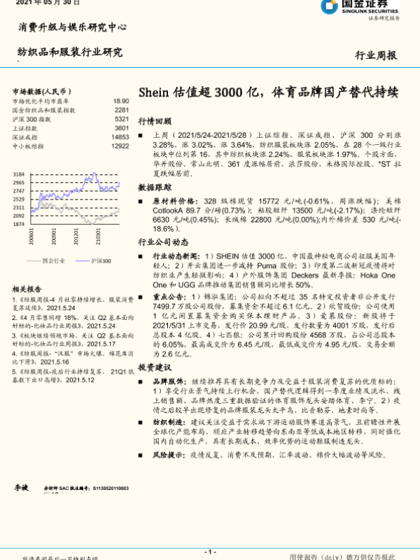 【国金证券】【20210530】20210530-国金证券-纺织服装行业:Shein估值超3000亿,体育品牌国产替代持续-17页