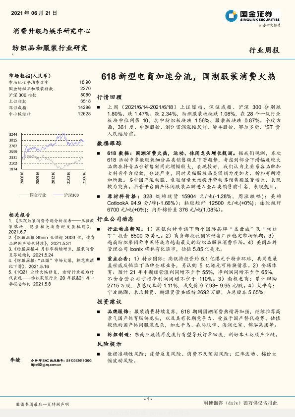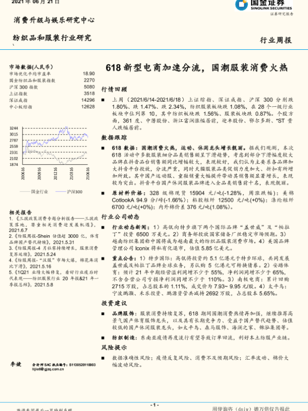 【国金证券】【20210621】20210621-国金证券-纺织品和服装行业研究:618新型电商加速分流,国潮服装消费火热-13页