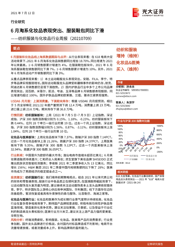 【光大证券】【20210712】20210712-光大证券-纺织服装与化妆品行业周报:6月淘系化妆品表现突出、服装鞋包同比下滑-15页