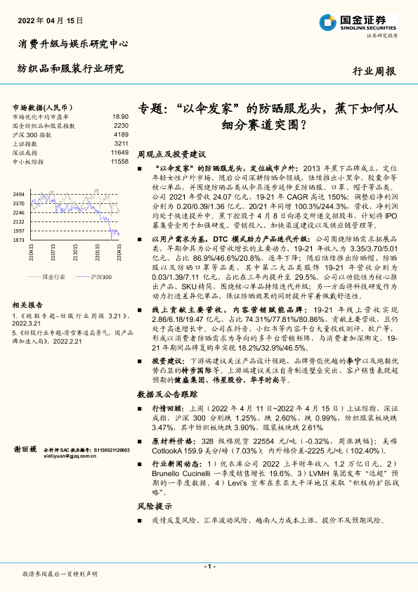 【国金证券】【20220415】“以伞发家”的防晒服龙头,蕉下如何从细分赛道突围?-23页