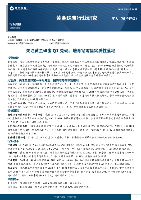 【国金证券】【20230226】20230226-国金证券-黄金珠宝行业研究:关注黄金珠宝Q1兑现、培育钻零售实质性落地-20页