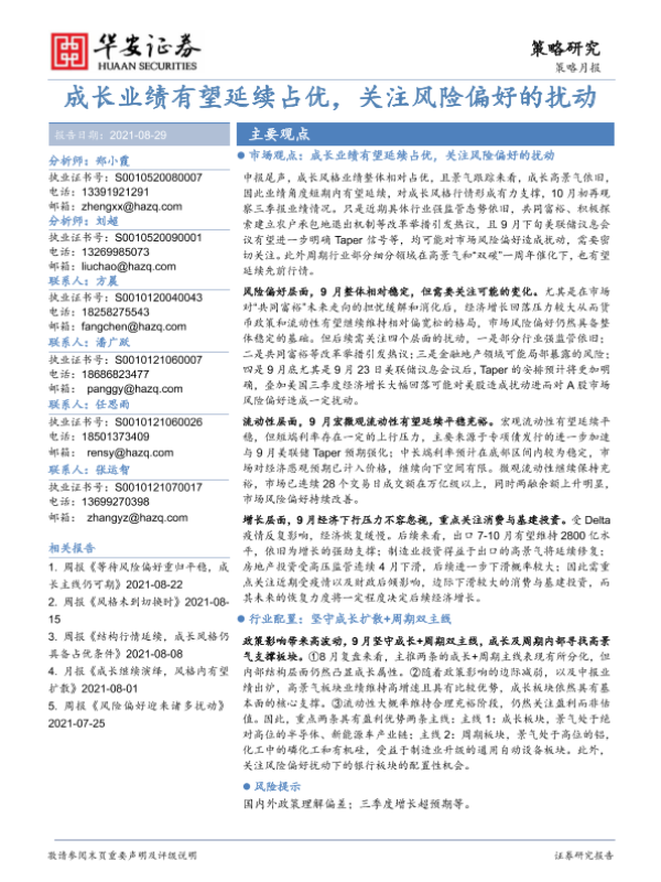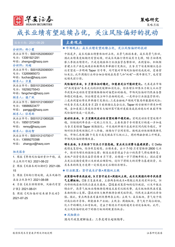 【华安证券】【20210829】策略月报:成长业绩有望延续占优,关注风险偏好的扰动-22页