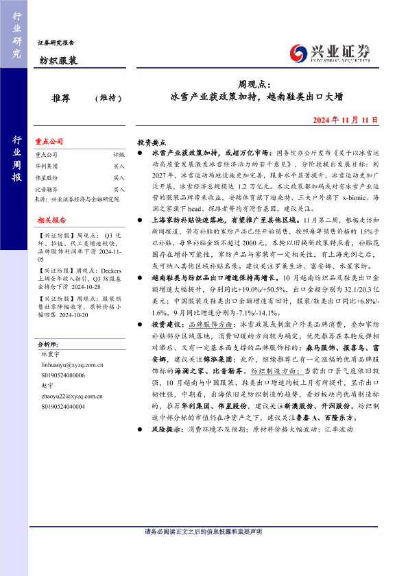 【兴业证券】【20241111】周观点:冰雪产业获政策加持,越南鞋类出口大增-11页