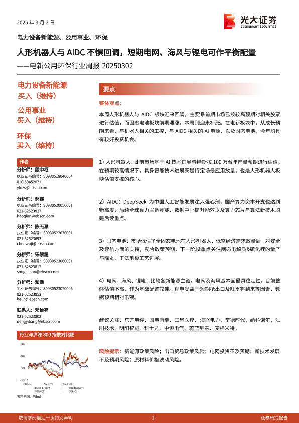 【光大证券】【20250302】电新公用环保行业周报:人形机器人与AIDC不惧回调,短期电网、海风与锂电可作平衡配置-11页