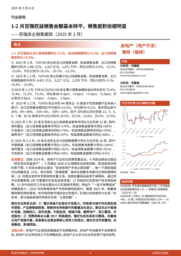 【光大证券】【20250304】百强房企销售跟踪(2025年2月):1-2月百强权益销售金额基本持平,销售面积收缩明显-11页