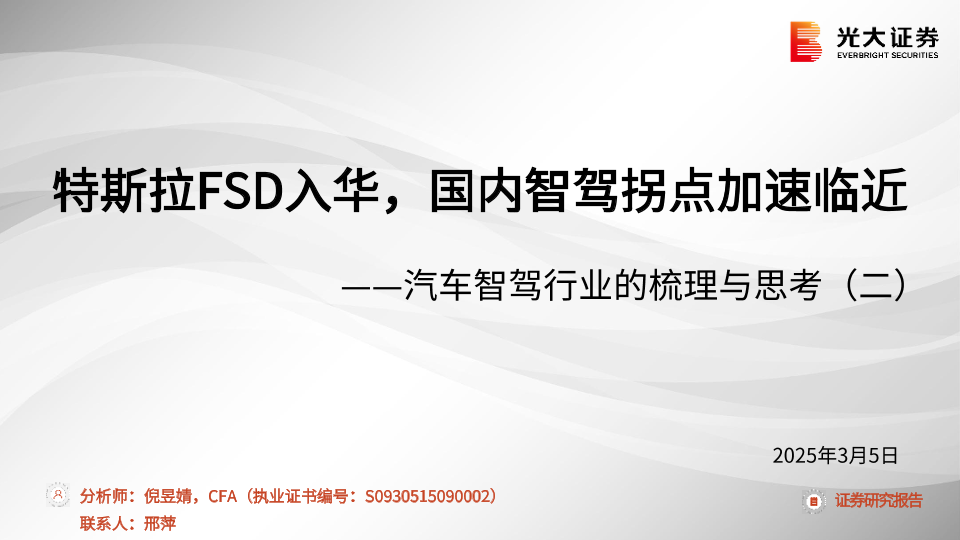 【光大证券】【20250305】汽车智驾行业的梳理与思考(二):特斯拉FSD入华,国内智驾拐点加速临近-24页