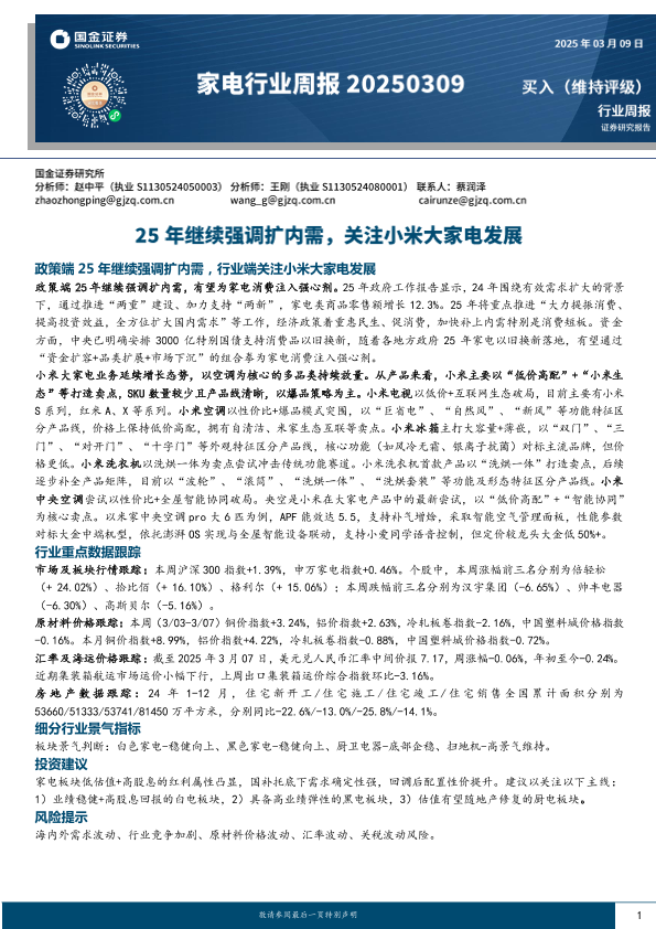 【国金证券】【20250309】20250309-国金证券-家电行业周报:25年继续强调扩内需,关注小米大家电发展-14页