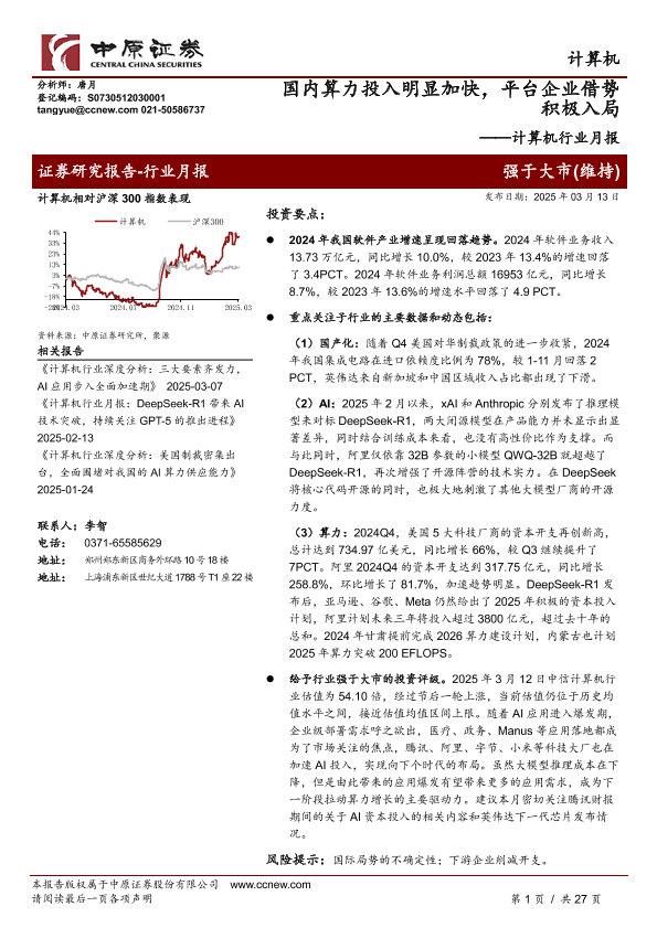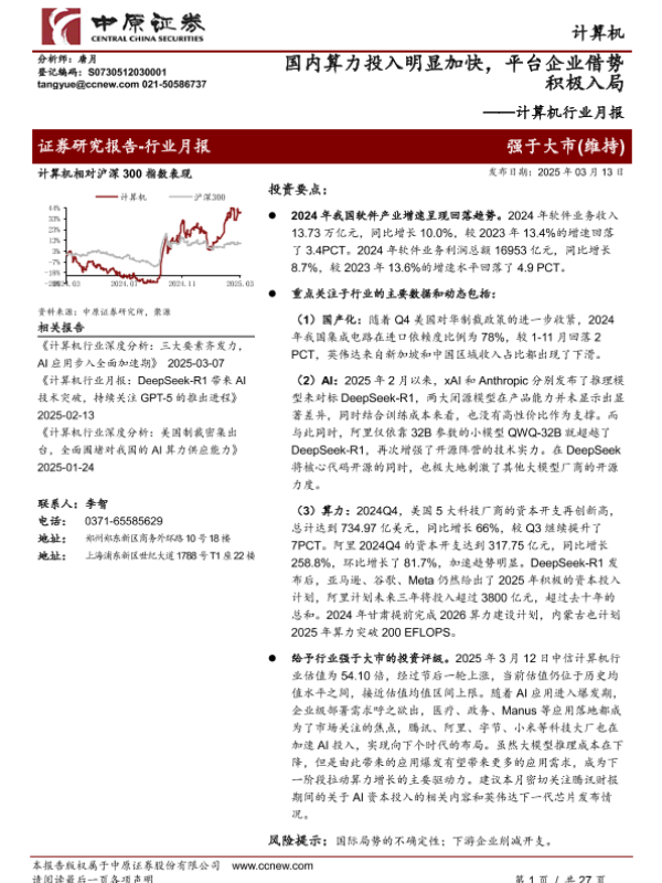 【中原证券】【20250313】国内算力投入明显加快,平台企业借势积极入局-27页