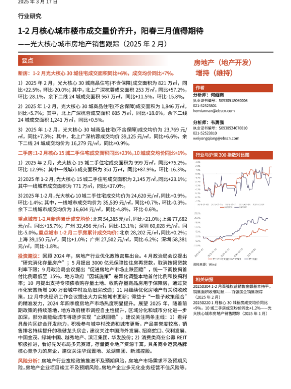 【光大证券】【20250317】1-2月核心城市楼市成交量价齐升,阳春三月值得期待-12页