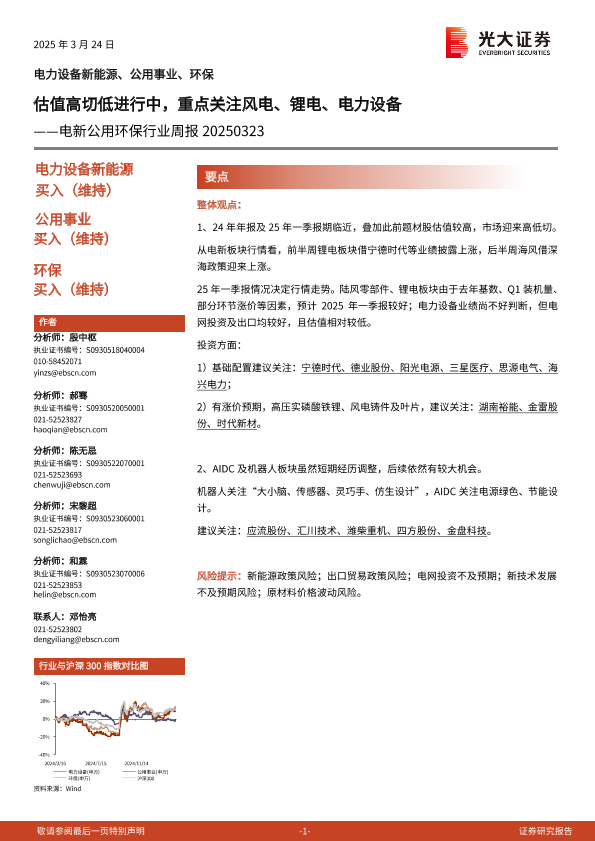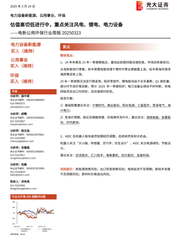 【光大证券】【20250324】电新公用环保行业周报:估值高切低进行中,重点关注风电、锂电、电力设备-12页