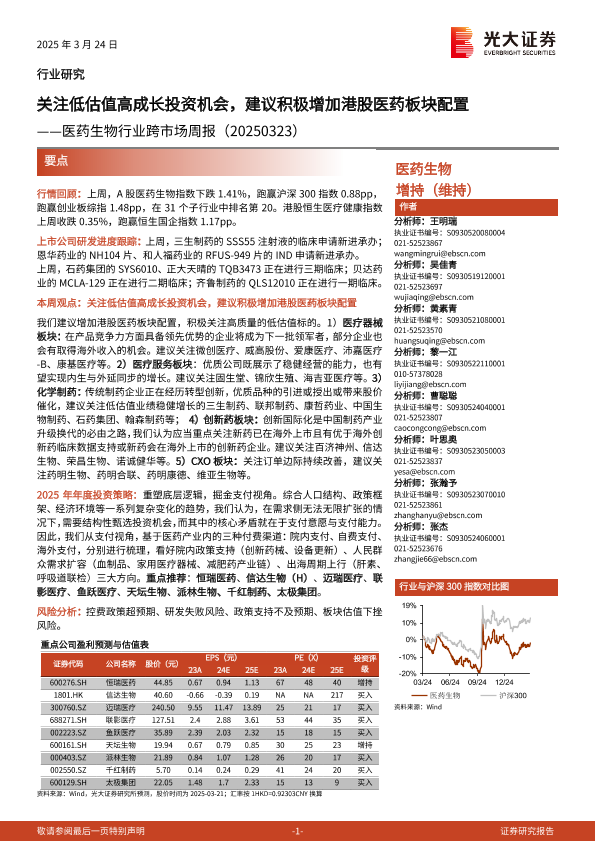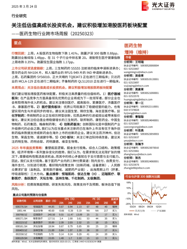 【光大证券】【20250324】医药生物行业跨市场周报:关注低估值高成长投资机会,建议积极增加港股医药板块配置-15页