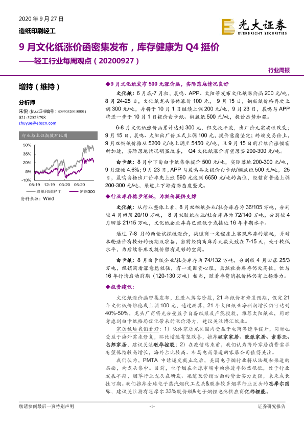【光大证券】【20200927】20200927-光大证券-轻工行业每周观点:9月文化纸涨价函密集发布,库存健康为Q4挺价-8页