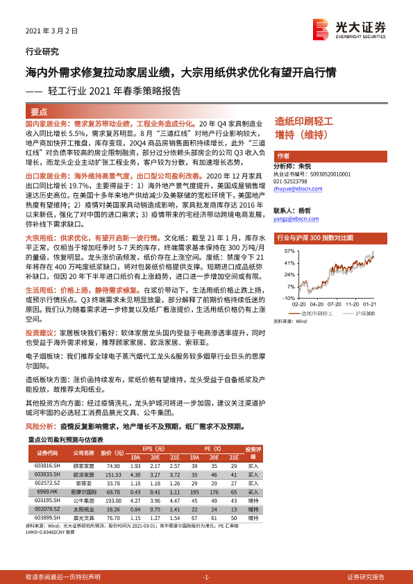 【光大证券】【20210302】轻工行业2021年春季策略报告:海内外需求修复拉动家居业绩,大宗用纸供求优化有望开启行情-30页