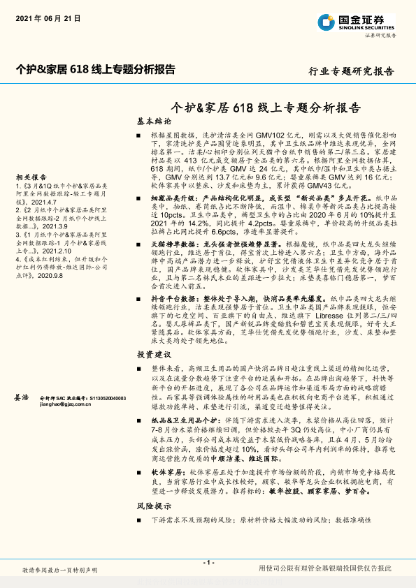 【国金证券】【20210621】个护&家居618线上专题分析报告-12页