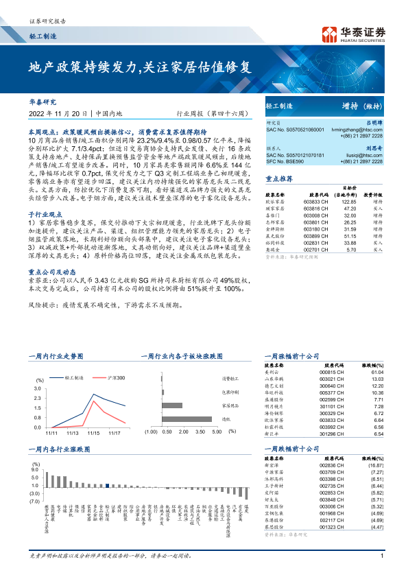 【华泰证券】【20221120】轻工制造行业周报(第四十六周):地产政策持续发力,关注家居估值修复-13页