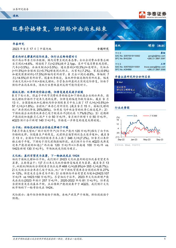 【华泰证券】【20230917】20230917-华泰证券-造纸专题研究:旺季价格修复,但供给冲击尚未结束-16页
