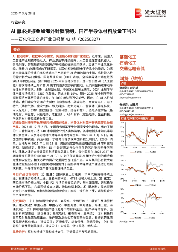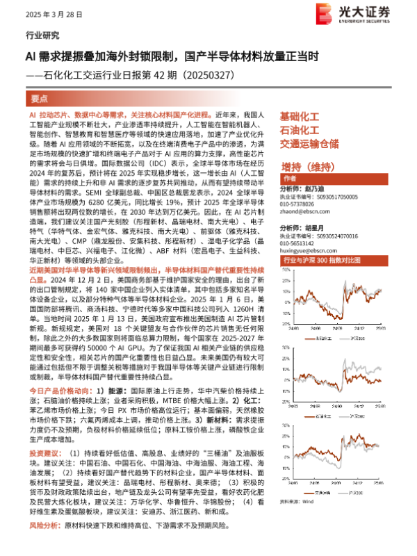【光大证券】【20250328】石化化工交运行业日报第42期:AI需求提振叠加海外封锁限制,国产半导体材料放量正当时-11页