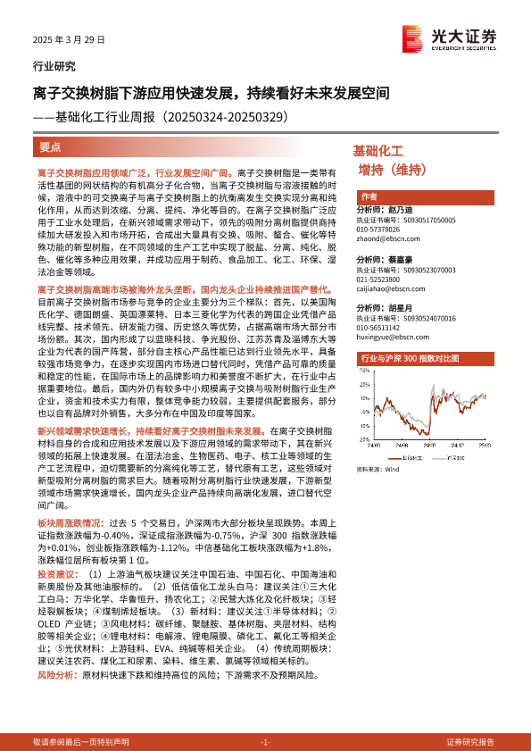 【光大证券】【20250329】基础化工行业周报:离子交换树脂下游应用快速发展,持续看好未来发展空间-26页