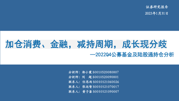 【华安证券】【20230131】2022Q4公募基金及陆股通持仓分析:加仓消费、金融,减持周期,成长现分歧-42页