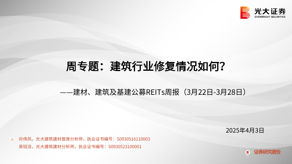 【光大证券】【20250403】20250403-光大证券-建材、建筑及基建公募REITs周报:周专题:建筑行业修复情况如何?-37页