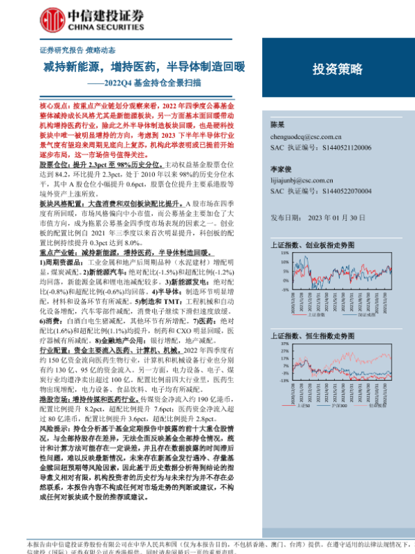 【中信建投证券】【20230130】2022Q4基金持仓全景扫描:减持新能源,增持医药,半导体制造回暖-22页