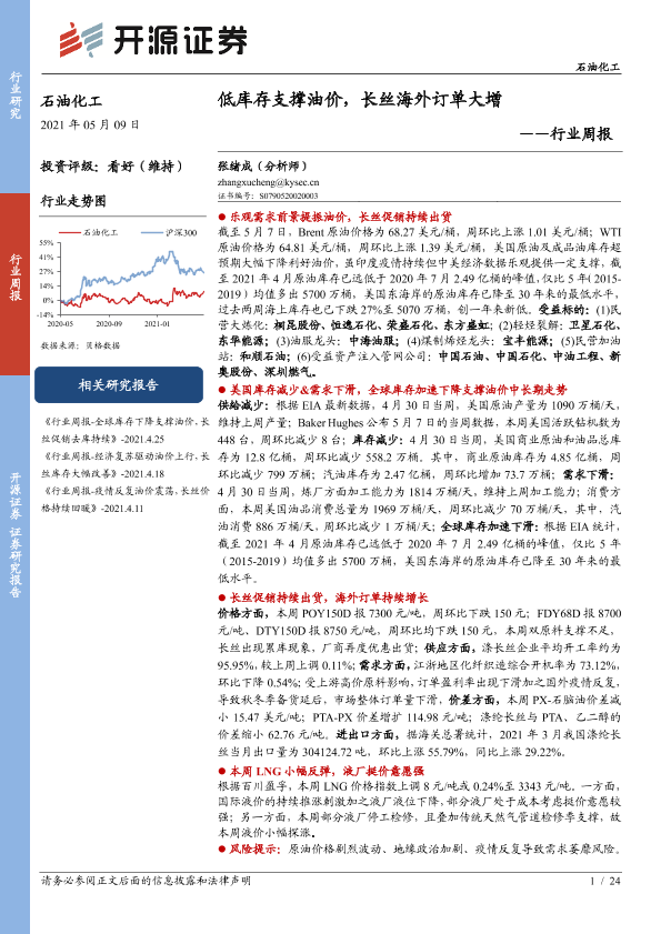 【开源证券】【20210509】20210509-开源证券-石油化工行业周报:低库存支撑油价,长丝海外订单大增-24页