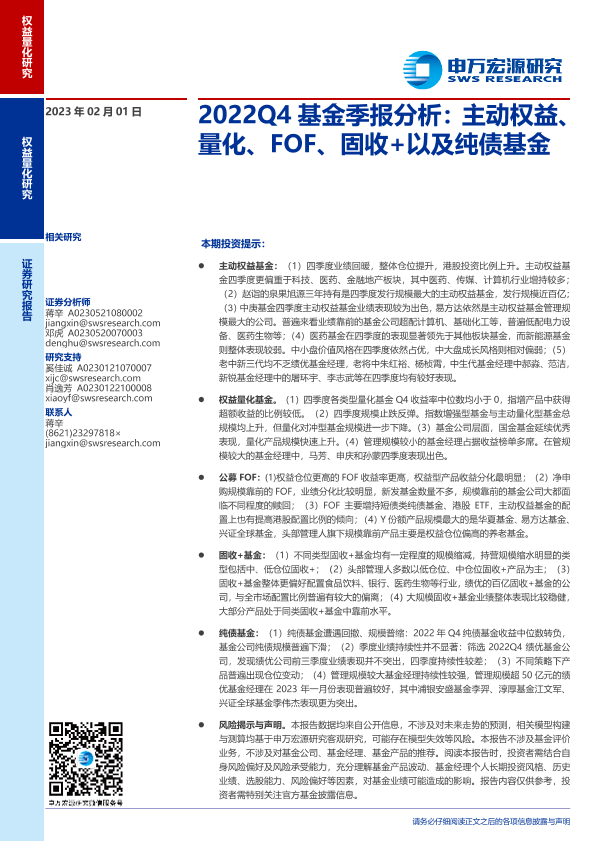 【申万宏源】【20230201】2022Q4基金季报分析:主动权益、量化、FOF、固收+以及纯债基金-49页