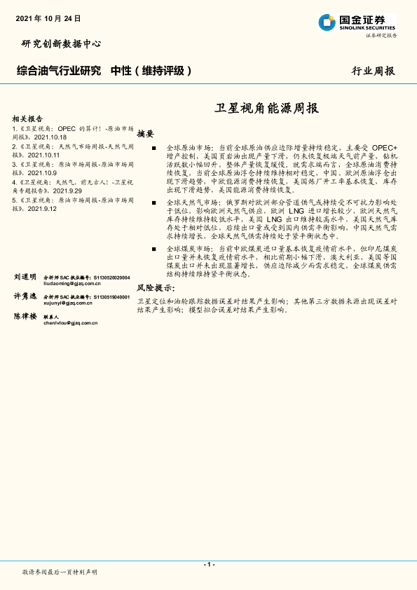 【国金证券】【20211024】20211024-国金证券-综合油气行业研究:卫星视角能源周报-18页