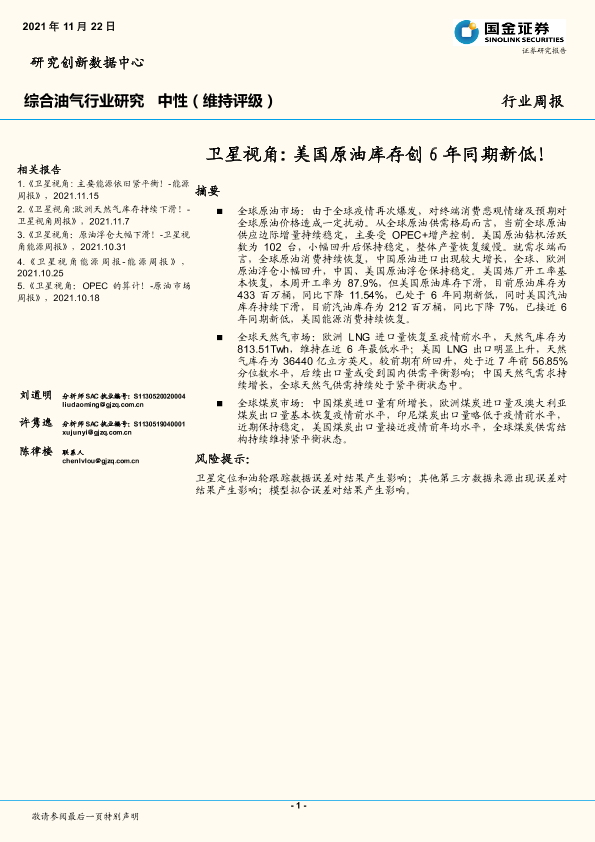 【国金证券】【20211122】综合油气行业研究:卫星视角 美国原油库存创6年同期新低!-17页