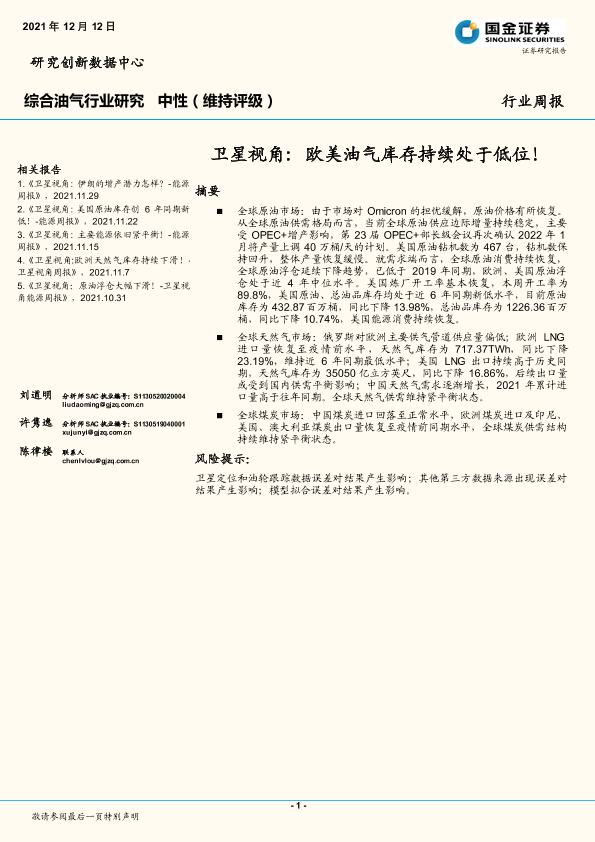【国金证券】【20211212】综合油气行业研究:卫星视角:欧美油气库存持续处于低位!-15页