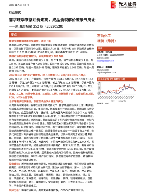 【光大证券】【20220528】需求旺季来临油价走高,成品油裂解价差景气高企——原油周报第252期-11页