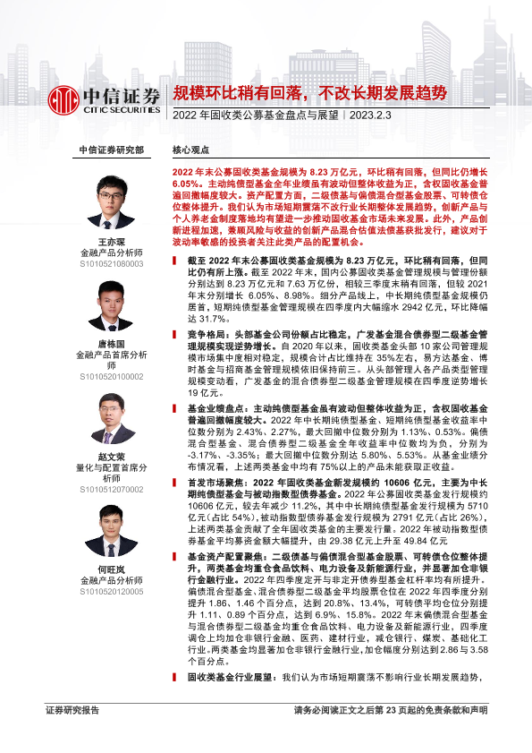 【中信证券】【20230203】2022年固收类公募基金盘点与展望:规模环比稍有回落,不改长期发展趋势-24页
