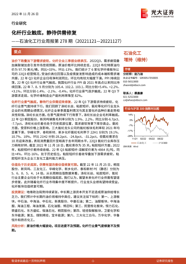【光大证券】【20221126】20221126-光大证券-石油化工行业周报第278期:化纤行业触底,静待供需修复-19页