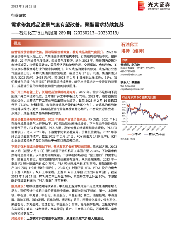【光大证券】【20230219】需求修复成品油景气度有望改善,聚酯需求持续复苏-20页