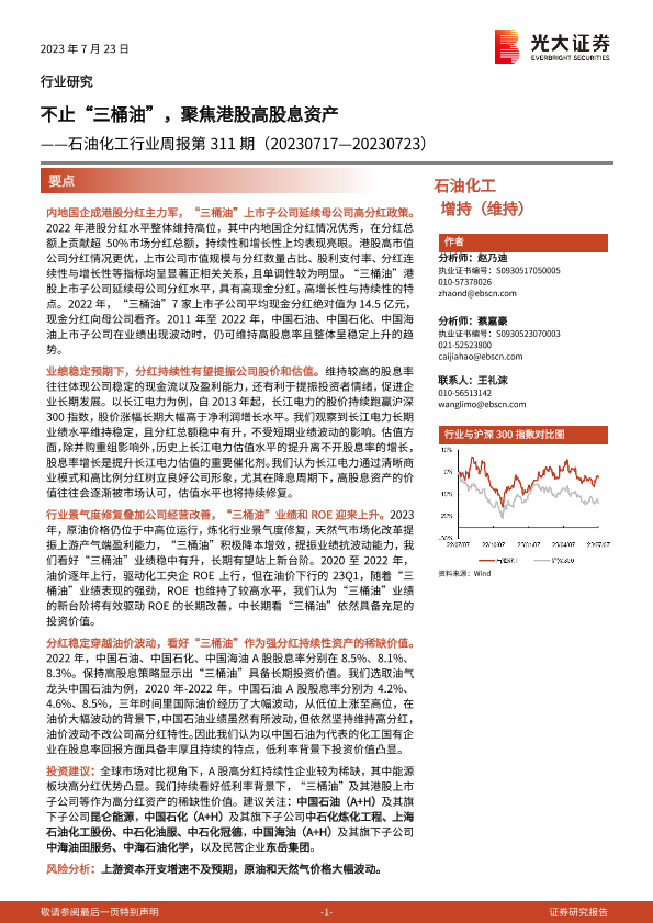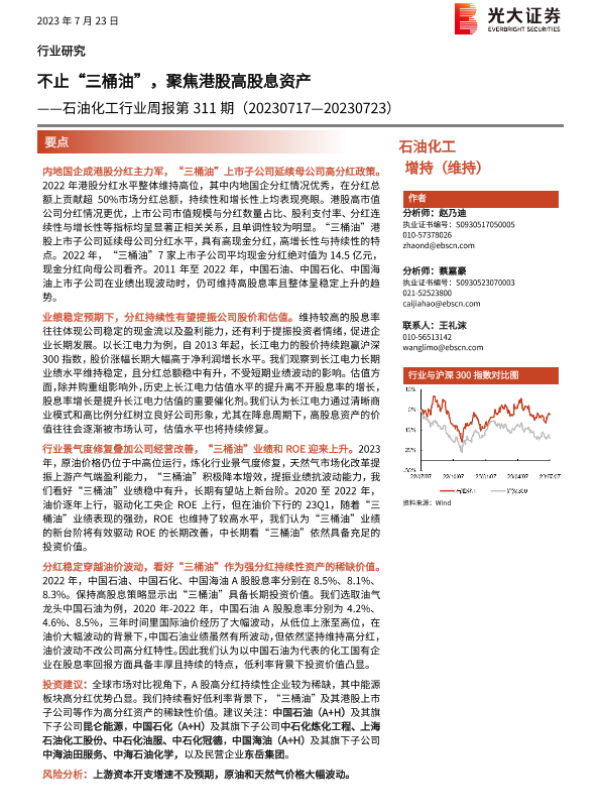 【光大证券】【20230723】20230723-光大证券-石油化工行业周报第311期:不止“三桶油”,聚焦港股高股息资产-24页