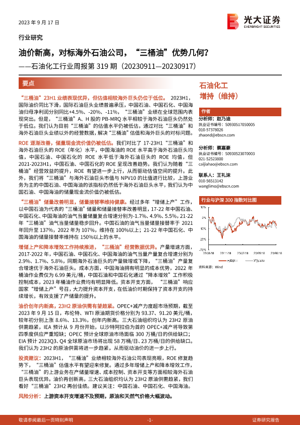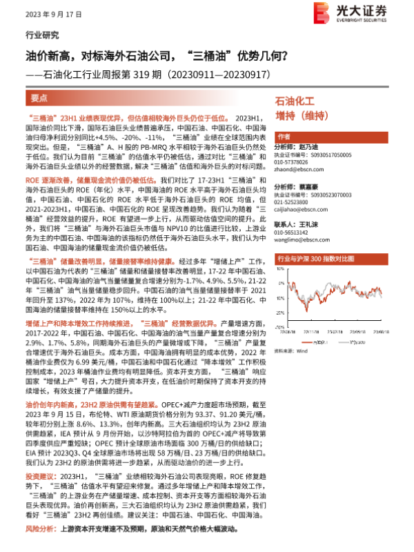 【光大证券】【20230917】20230917-光大证券-石油化工行业周报第319期:油价新高,对标海外石油公司,“三桶油”优势几何?-22页