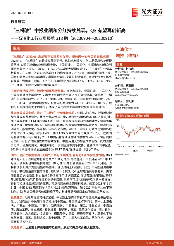 【光大证券】【20230910】20230910-光大证券-石油化工行业周报第318期:“三桶油”中报业绩和分红持续兑现,Q3有望再创新高-26页