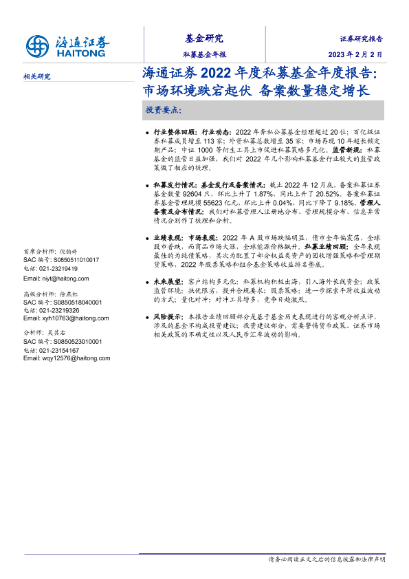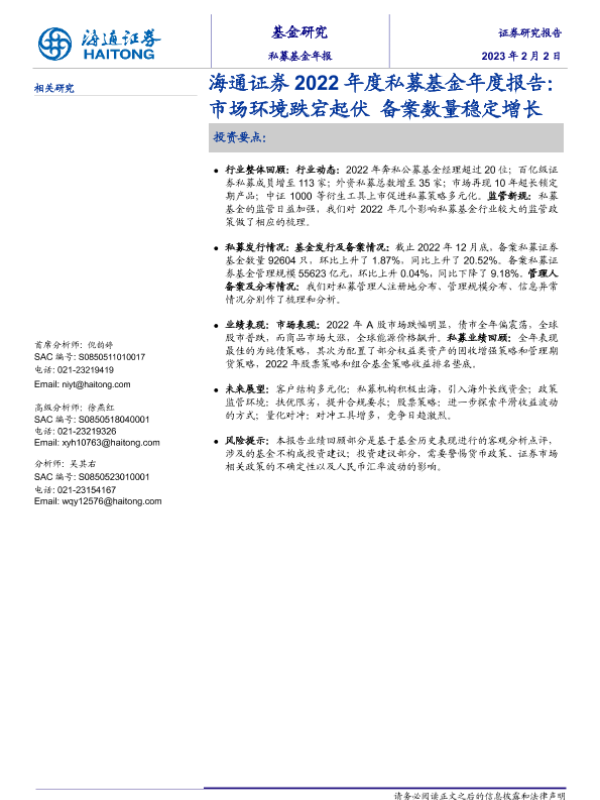 【海通证券】【20230202】2022年度私募基金年度报告:市场环境跌宕起伏,备案数量稳定增长-28页