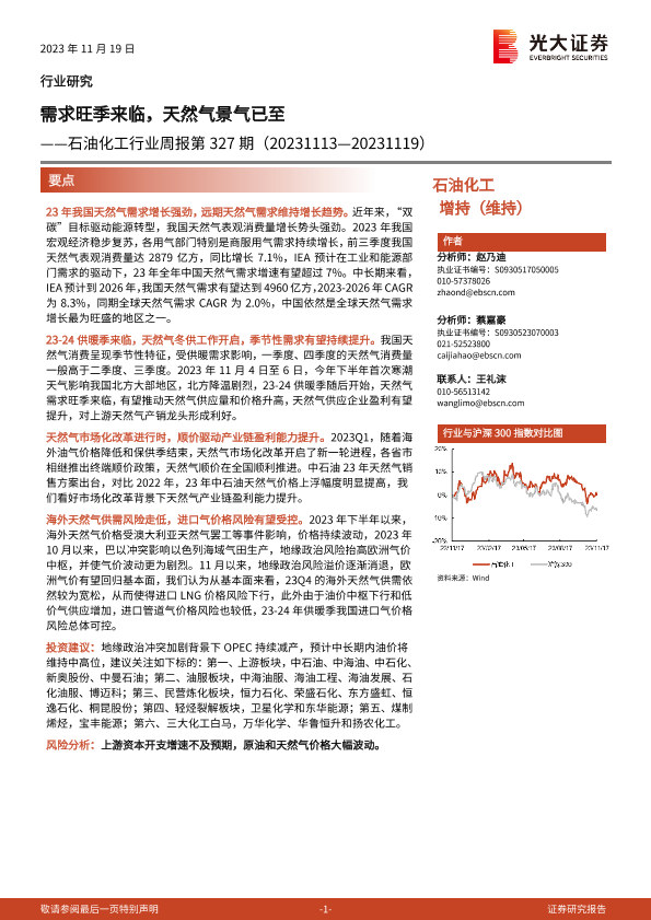 【光大证券】【20231119】20231119-光大证券-石油化工行业周报第327期:需求旺季来临,天然气景气已至-20页