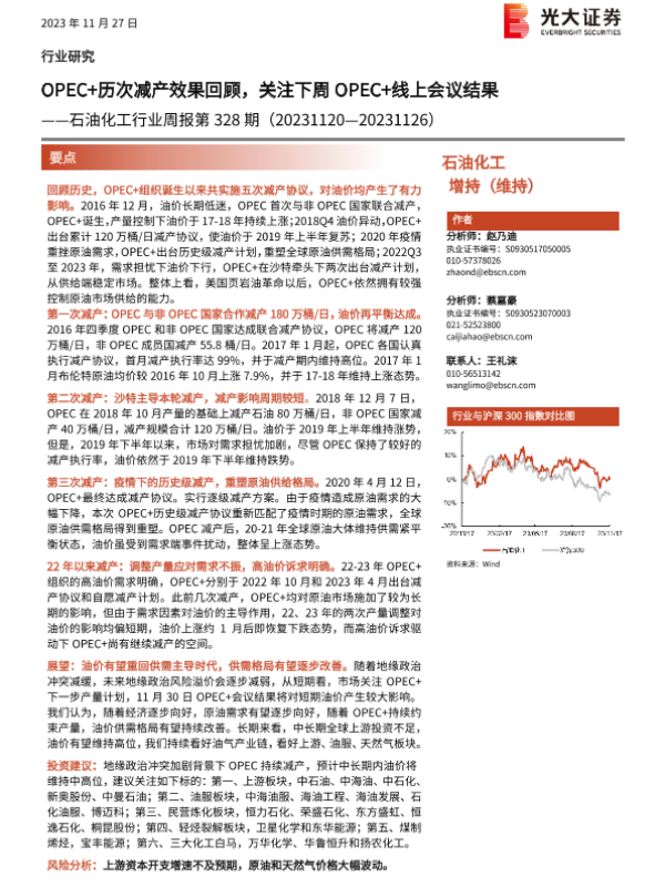 【光大证券】【20231127】20231127-光大证券-石油化工行业周报第328期:OPEC+历次减产效果回顾,关注下周OPEC+线上会议结果-24页
