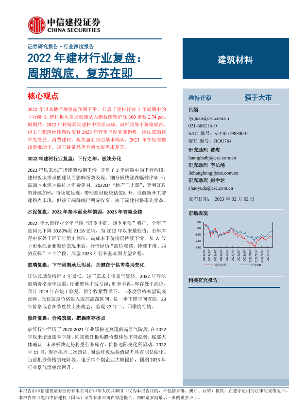 【中信建投证券】【20230202】2022年建材行业复盘:周期筑底,复苏在即-41页