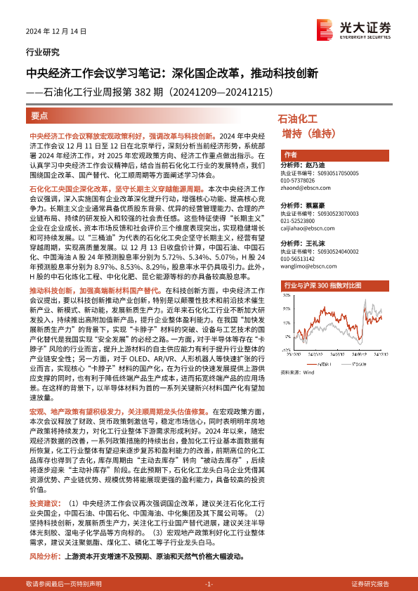 【光大证券】【20241214】20241214-光大证券-石油化工行业周报第382期:中央经济工作会议学习笔记,深化国企改革,推动科技创新-15页